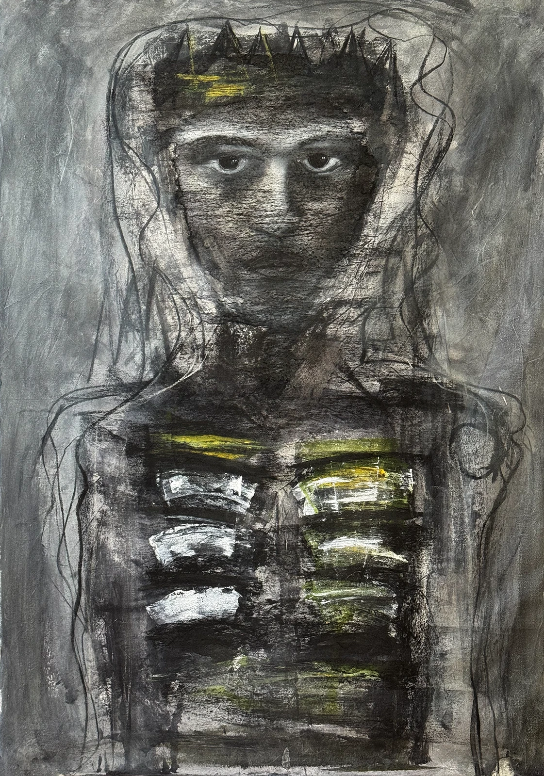 Recent works include Fractured Whispers, which reflects on the endangered Celtic rainforests of Scotland through foraged pigments and layered imagery, and A Moment’s Existence, a series of paintings and photographs that meditate on identity, mortality, and transformation through fragmented figures and mythic archetypes. Earlier projects such as Self – I and The Self & The Other examine portraiture, identity, and the shifting space between self and other.